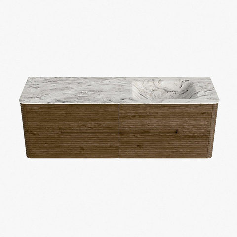 Mondiaz CIRO-DLUX Badkamermeubelset - 150x45x50cm - Solid surface wastafel Glace - 1 wasbak Rechts - 1 kraangat - 4 lades - Dusk
