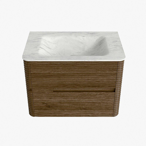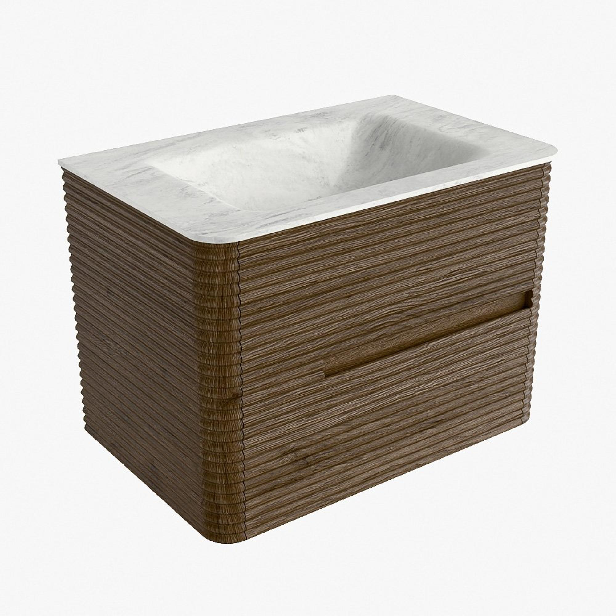 Mondiaz CIRO-DLUX Badkamermeubelset - 70x45x50cm - Solid surface wastafel Opalo - 1 wasbak Midden - 1 kraangat - 2 lades - Dusk