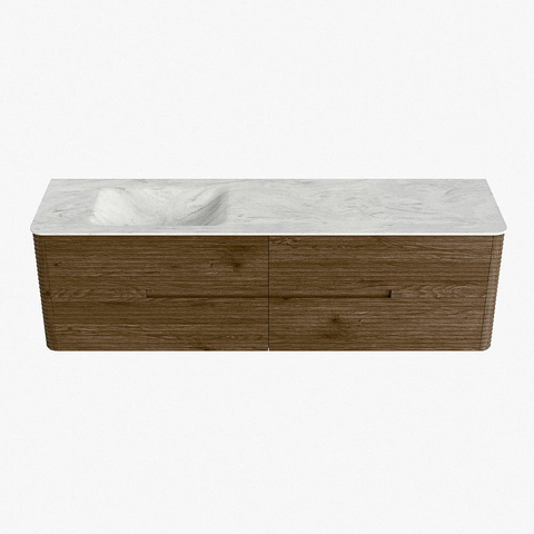 Mondiaz CIRO-DLUX Badkamermeubelset - 170x45x50cm - Solid surface wastafel Opalo - 1 wasbak Links - zonder kraangaten - 4 lades - Dusk