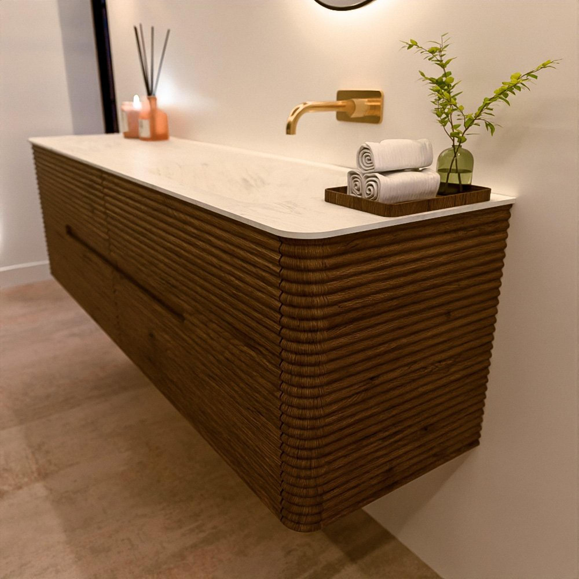 Het CIRO-DLUX badkamermeubel is ontwikkeld voor wie kiest voor modern design, natuurlijke materialen en hoogwaardige functionaliteit. Met maatvoeringen van 70 cm tot 190 cm past de CIRO-serie moeiteloos in zowel compacte badkamers als royale designruimtes. Elk meubel is een uitgebalanceerde combinatie van esthetiek, ambacht en duurzame kwaliteit.