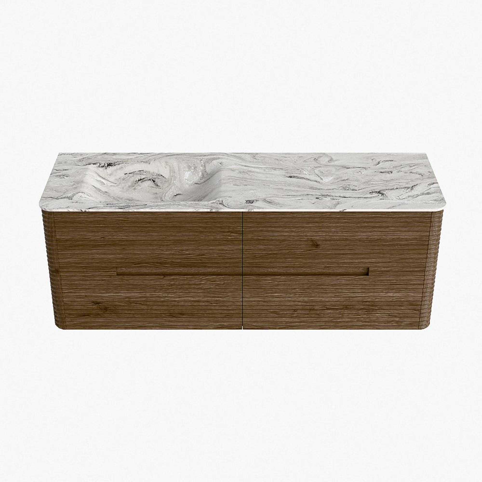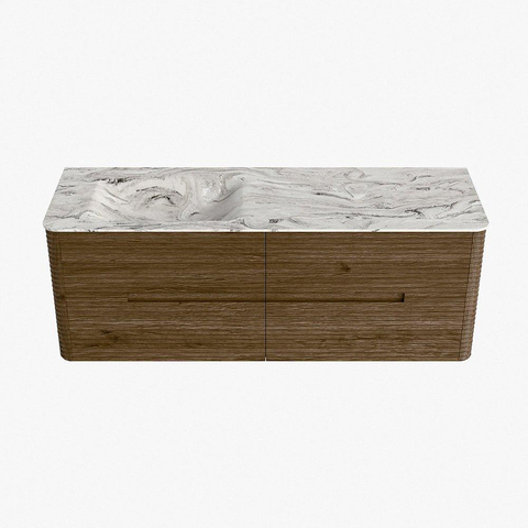 Mondiaz CIRO-DLUX Badkamermeubelset - 140x45x50cm - Solid surface wastafel Glace - 1 wasbak Links - 1 kraangat - 4 lades - Dusk
