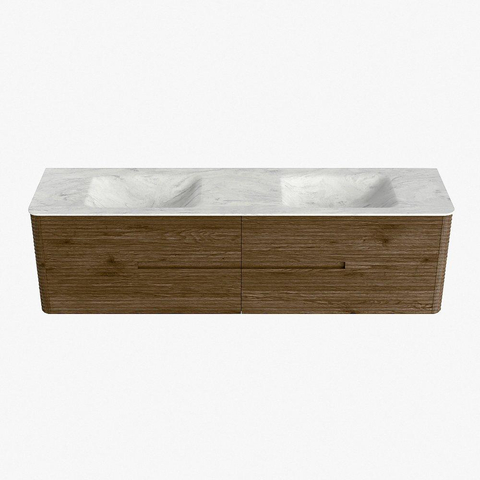 Mondiaz CIRO-DLUX Badkamermeubelset - 180x45x50cm - Solid surface wastafel Opalo - 2 wasbak Dubbel - zonder kraangaten - 4 lades - Dusk