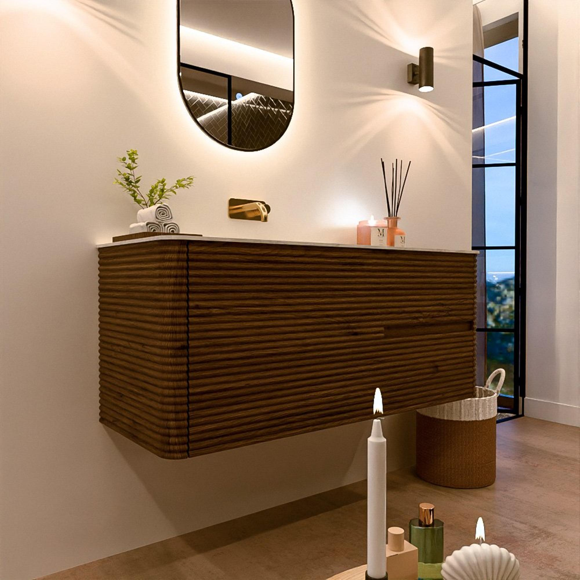 Het CIRO-DLUX badkamermeubel is ontwikkeld voor wie kiest voor modern design, natuurlijke materialen en hoogwaardige functionaliteit. Met maatvoeringen van 70 cm tot 190 cm past de CIRO-serie moeiteloos in zowel compacte badkamers als royale designruimtes. Elk meubel is een uitgebalanceerde combinatie van esthetiek, ambacht en duurzame kwaliteit.