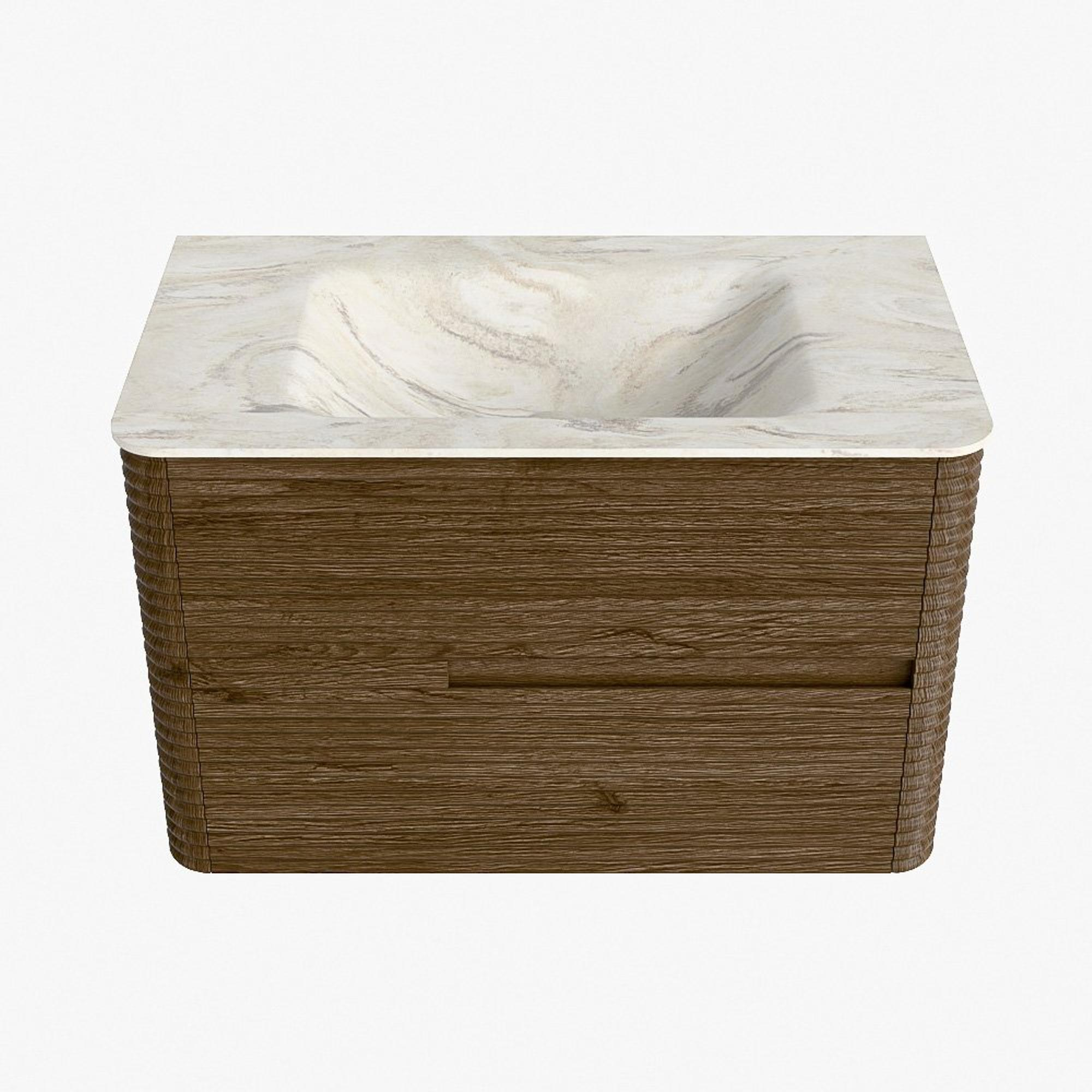 Mondiaz CIRO-DLUX Badkamermeubelset - 80x45x50cm - Solid surface wastafel Ostra - 1 wasbak Midden - 1 kraangat - 2 lades - Dusk