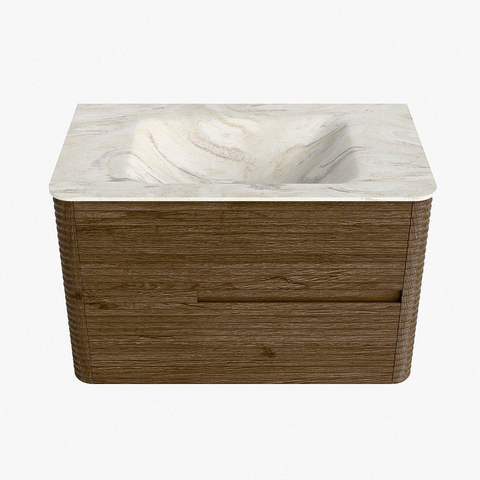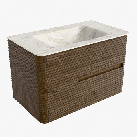 Mondiaz CIRO-DLUX Badkamermeubelset - 80x45x50cm - Solid surface wastafel Ostra - 1 wasbak Midden - zonder kraangaten - 2 lades - Dusk