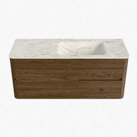 Mondiaz CIRO-DLUX Badkamermeubelset - 120x45x50cm - Solid surface wastafel Ostra - 1 wasbak Rechts - zonder kraangaten - 2 lades - Dusk