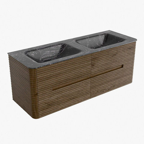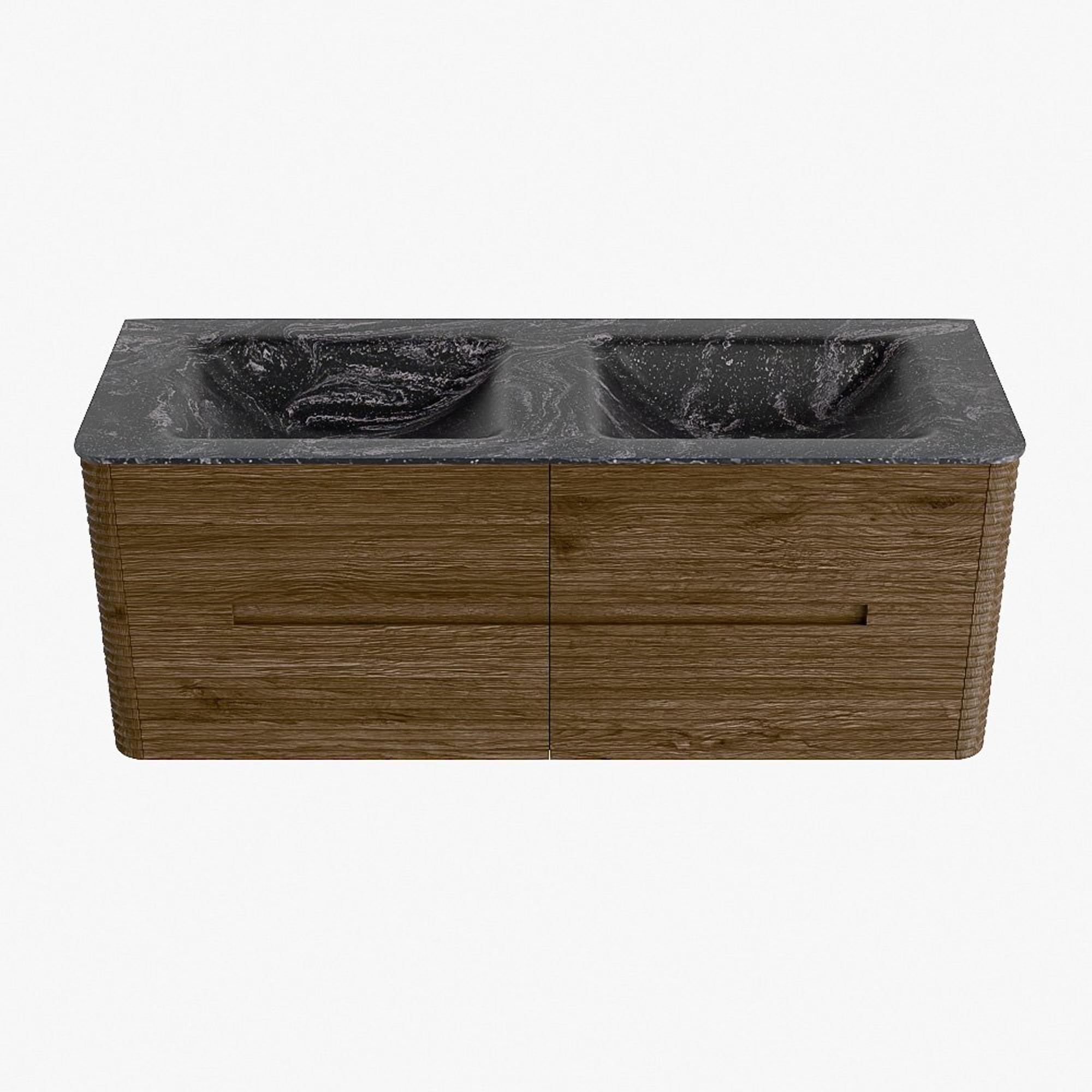 Mondiaz CIRO-DLUX Badkamermeubelset - 130x45x50cm - Solid surface wastafel Lava - 2 wasbak Dubbel - zonder kraangaten - 4 lades - Dusk