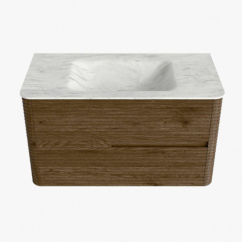 Mondiaz CIRO-DLUX Badkamermeubelset - 90x45x50cm - Solid surface wastafel Opalo - 1 wasbak Midden - 1 kraangat - 2 lades - Dusk