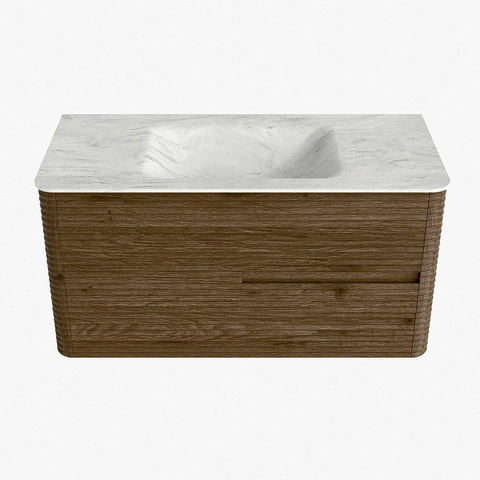 Mondiaz CIRO-DLUX Badkamermeubelset - 100x45x50cm - Solid surface wastafel Opalo - 1 wasbak Midden - zonder kraangaten - 2 lades - Dusk