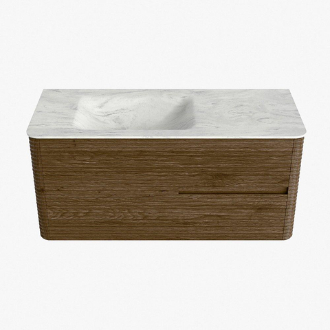 Mondiaz CIRO-DLUX Badkamermeubelset - 110x45x50cm - Solid surface wastafel Opalo - 1 wasbak Links - zonder kraangaten - 2 lades - Dusk