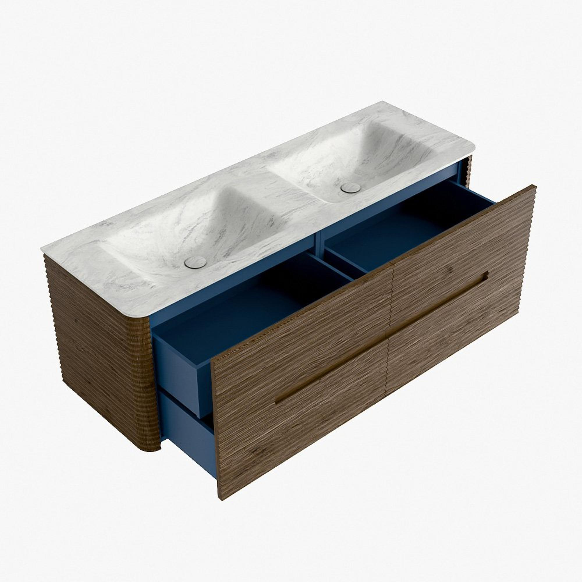 Mondiaz CIRO-DLUX Badkamermeubelset - 140x45x50cm - Solid surface wastafel Opalo - 2 wasbak Dubbel - 2 kraangaten - 4 lades - Dusk