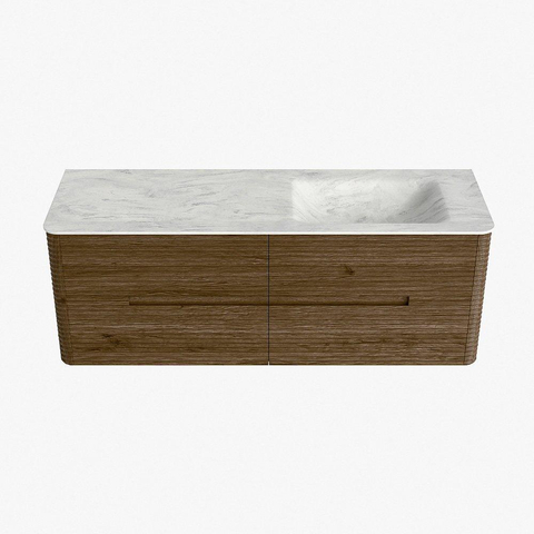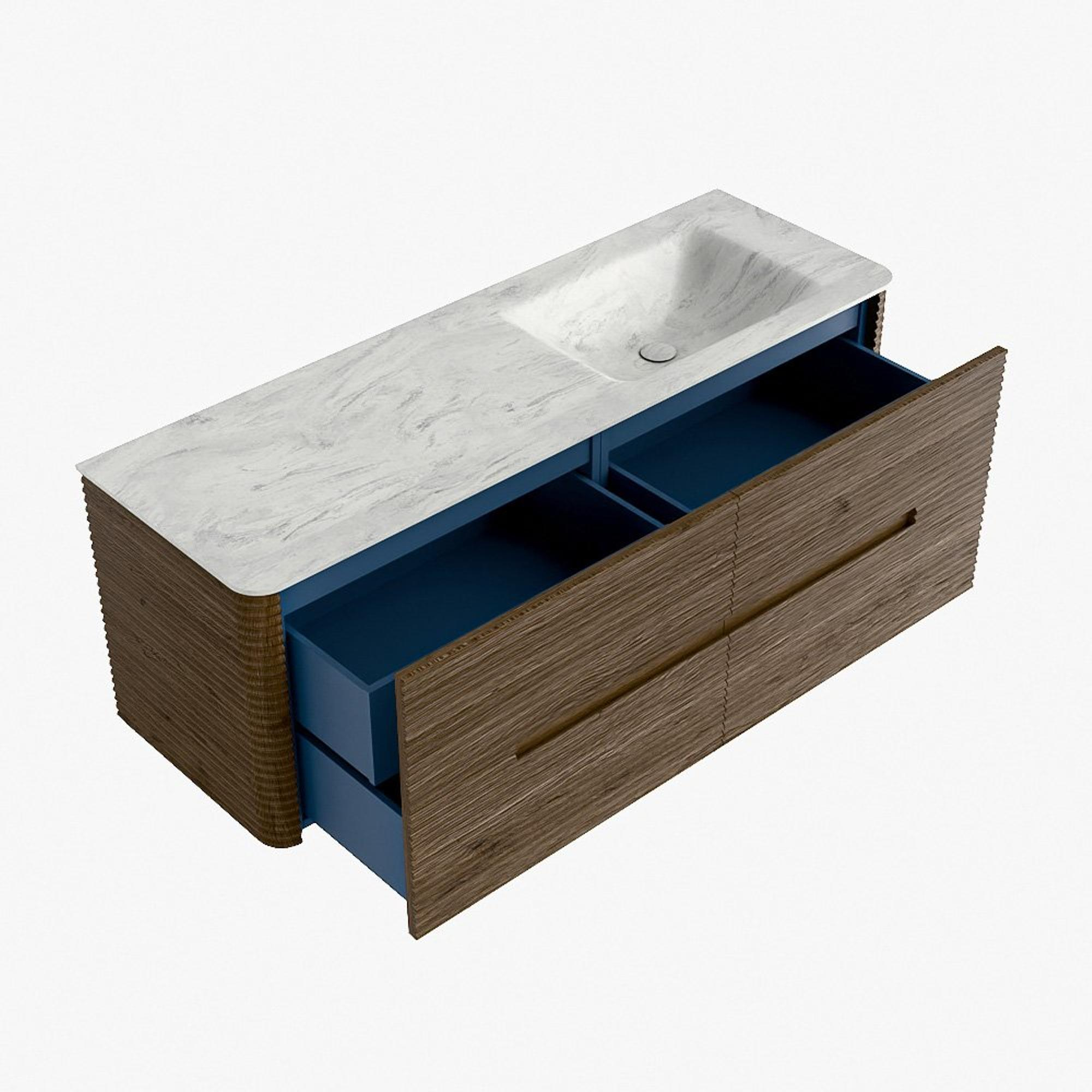 Mondiaz CIRO-DLUX Badkamermeubelset - 140x45x50cm - Solid surface wastafel Opalo - 1 wasbak Rechts - 1 kraangat - 4 lades - Dusk