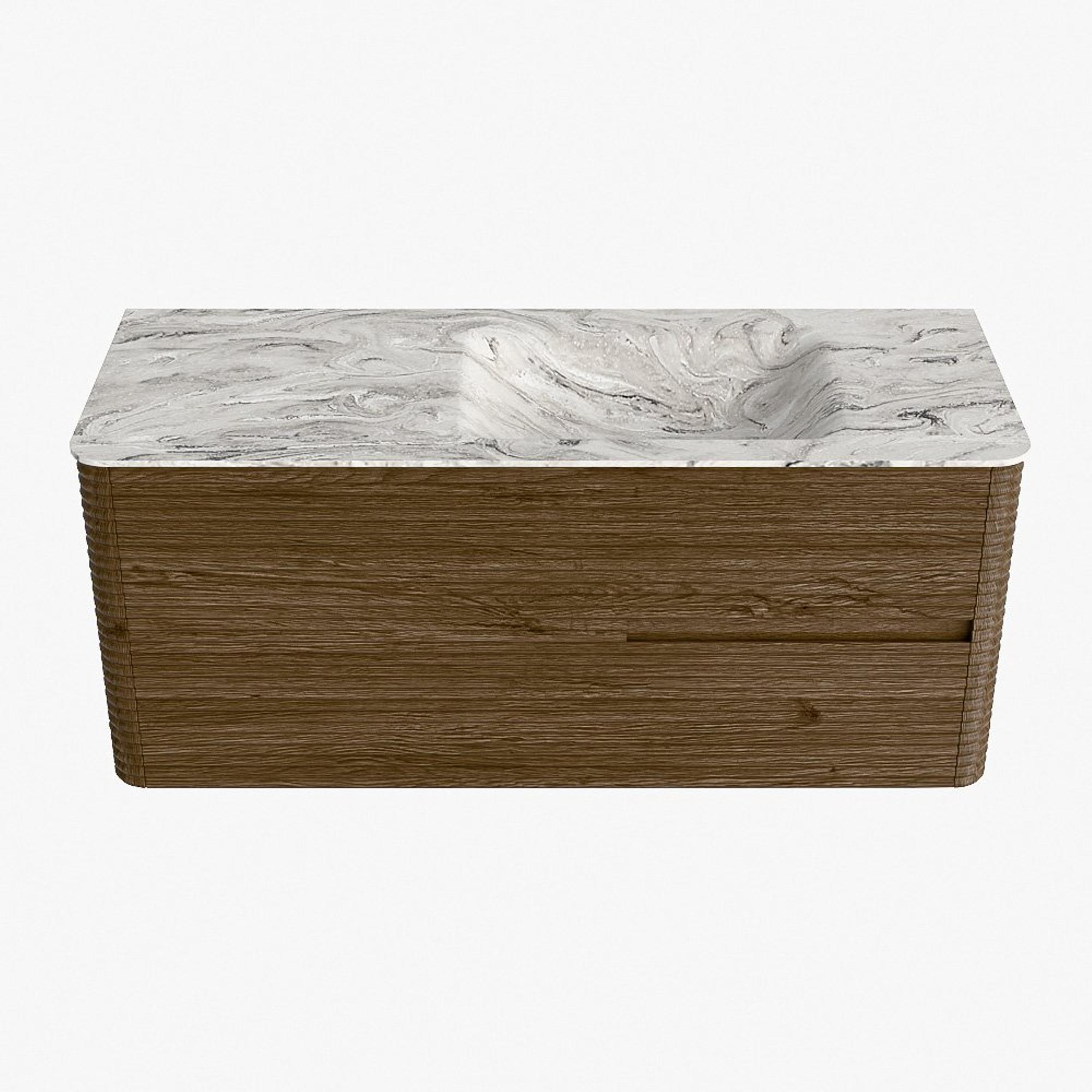 Mondiaz CIRO-DLUX Badkamermeubelset - 120x45x50cm - Solid surface wastafel Glace - 1 wasbak Rechts - zonder kraangaten - 2 lades - Dusk