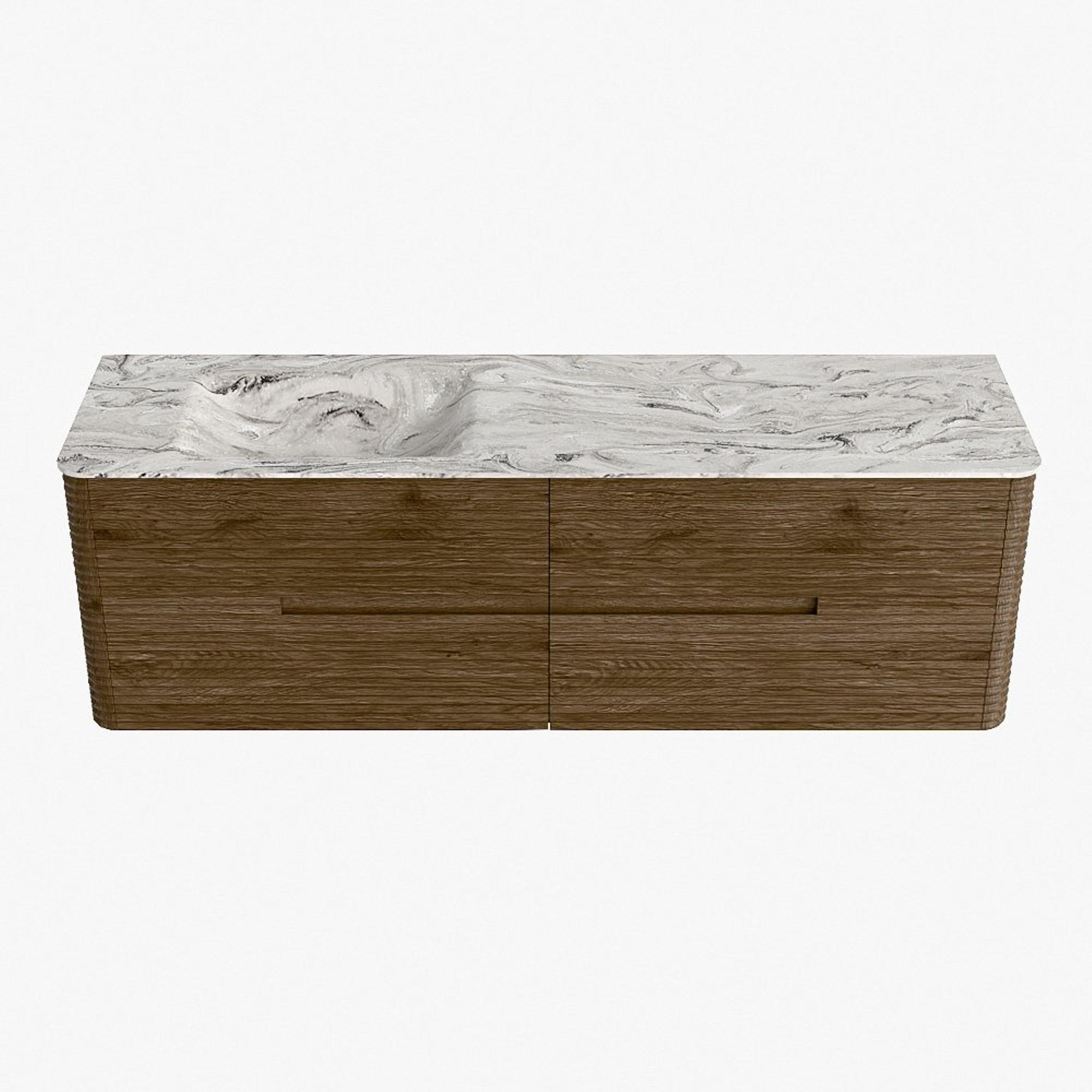 Mondiaz CIRO-DLUX Badkamermeubelset - 160x45x50cm - Solid surface wastafel Glace - 1 wasbak Links - 1 kraangat - 4 lades - Dusk