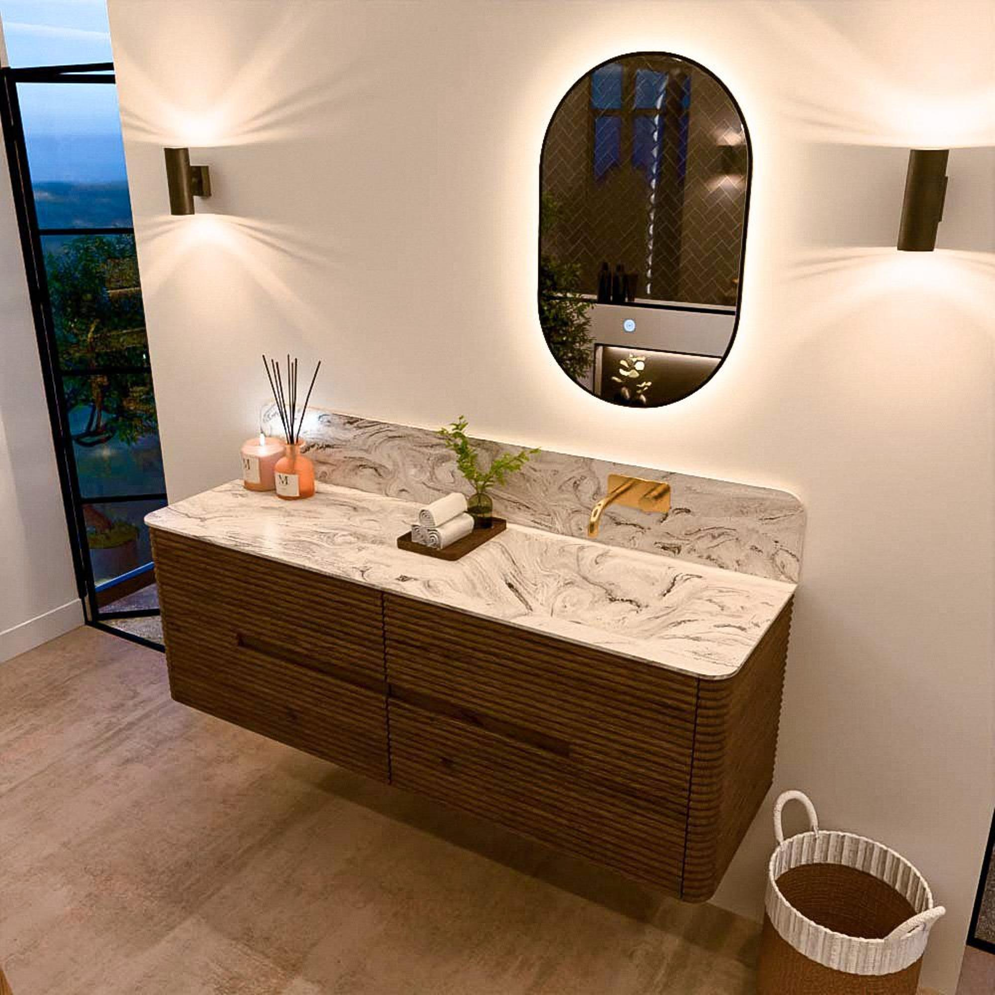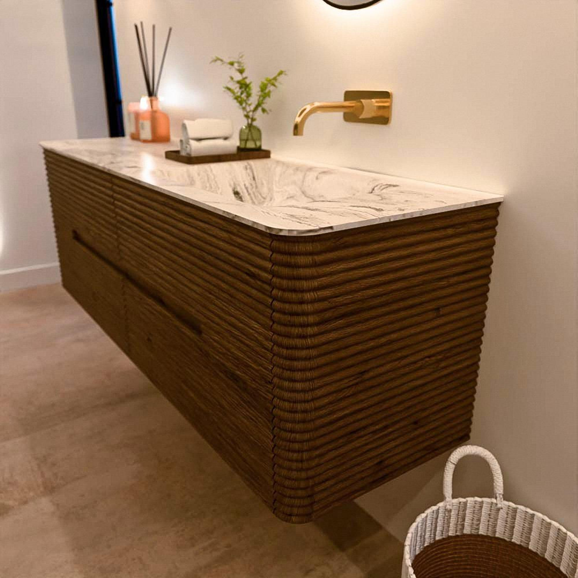 Het CIRO-DLUX badkamermeubel is ontwikkeld voor wie kiest voor modern design, natuurlijke materialen en hoogwaardige functionaliteit. Met maatvoeringen van 70 cm tot 190 cm past de CIRO-serie moeiteloos in zowel compacte badkamers als royale designruimtes. Elk meubel is een uitgebalanceerde combinatie van esthetiek, ambacht en duurzame kwaliteit.