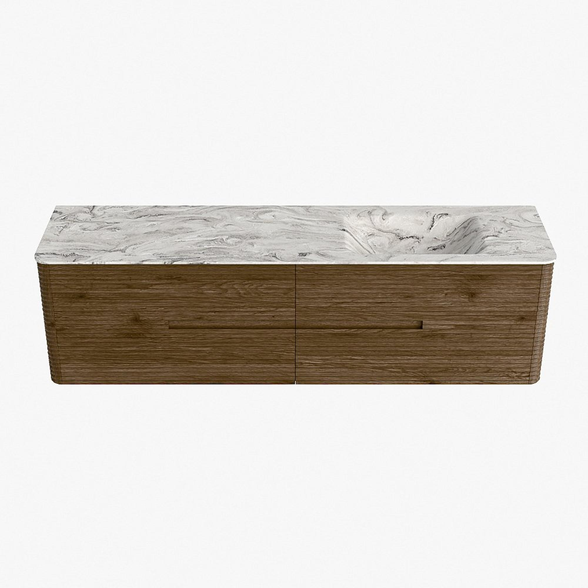 Mondiaz CIRO-DLUX Badkamermeubelset - 180x45x50cm - Solid surface wastafel Glace - 1 wasbak Rechts - 1 kraangat - 4 lades - Dusk