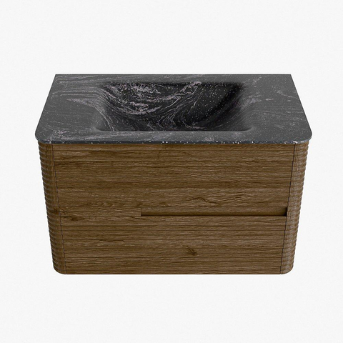 Mondiaz CIRO-DLUX Badkamermeubelset - 80x45x50cm - Solid surface wastafel Lava - 1 wasbak Midden - 1 kraangat - 2 lades - Dusk