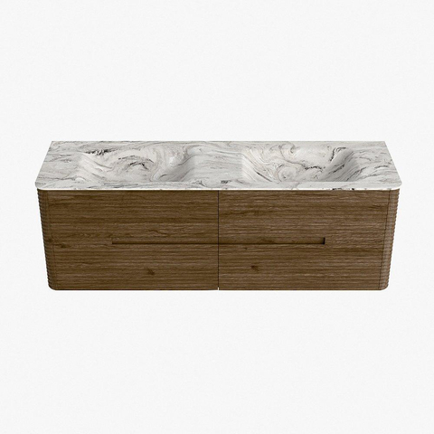 Mondiaz CIRO-DLUX Badkamermeubelset - 150x45x50cm - Solid surface wastafel Glace - 2 wasbak Dubbel - zonder kraangaten - 4 lades - Dusk