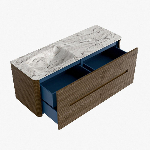 Functioneel gemak is een essentieel onderdeel van de CIRO-serie. Het meubel beschikt over een royale lade met extra binnen lade, ideaal voor het overzichtelijk opbergen van alle dagelijkse badkamerartikelen. Dankzij de geïntegreerde greep en het soft close-mechanisme blijft het front rustig, strak en elegant.