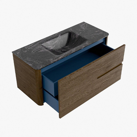 Mondiaz CIRO-DLUX Badkamermeubelset - 110x45x50cm - Solid surface wastafel Lava - 1 wasbak Midden - 1 kraangat - 2 lades - Dusk