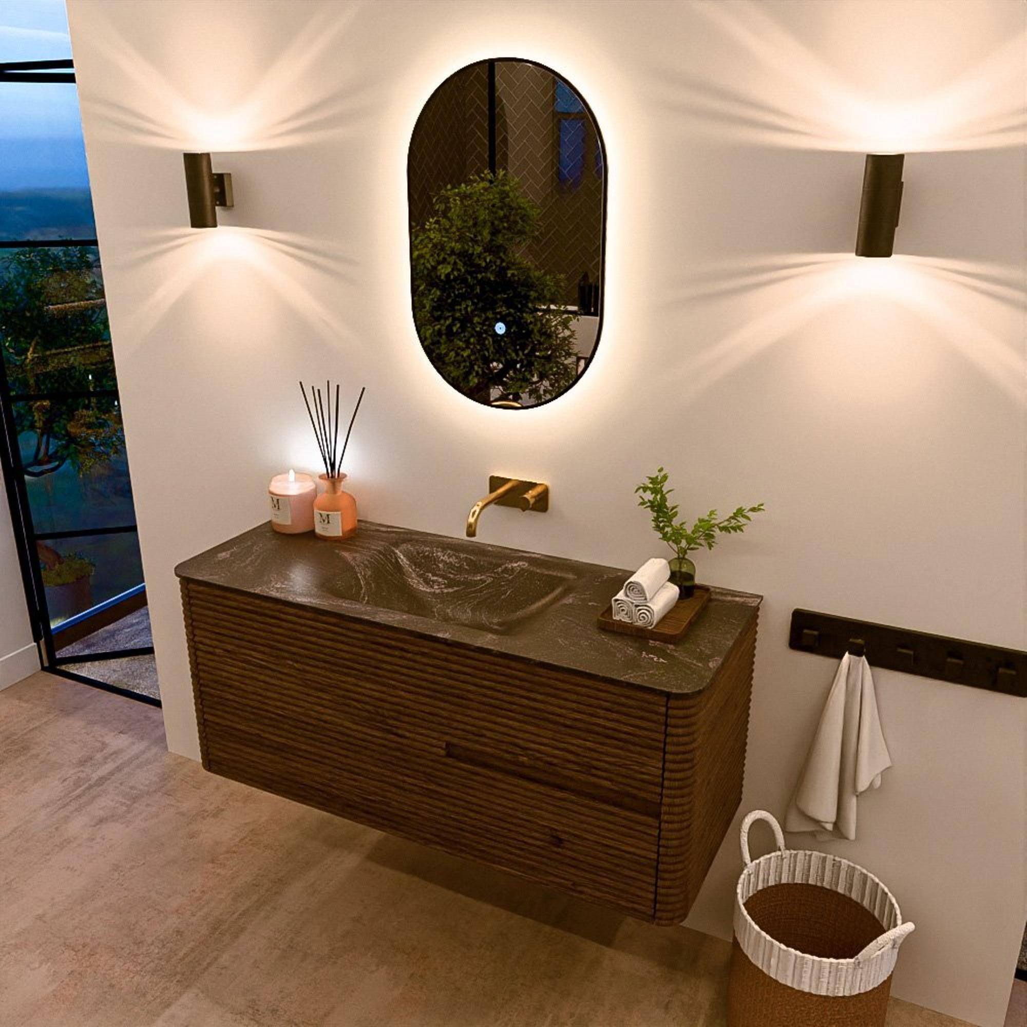 Mondiaz CIRO-DLUX Badkamermeubelset - 120x45x50cm - Solid surface wastafel Lava - 1 wasbak Midden - zonder kraangaten - 2 lades - Dusk