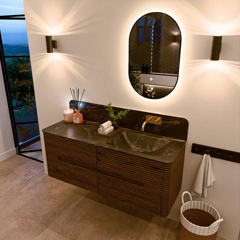 Mondiaz CIRO-DLUX Badkamermeubelset - 130x45x50cm - Solid surface wastafel Lava - 1 wasbak Rechts - zonder kraangaten - 4 lades - Dusk
