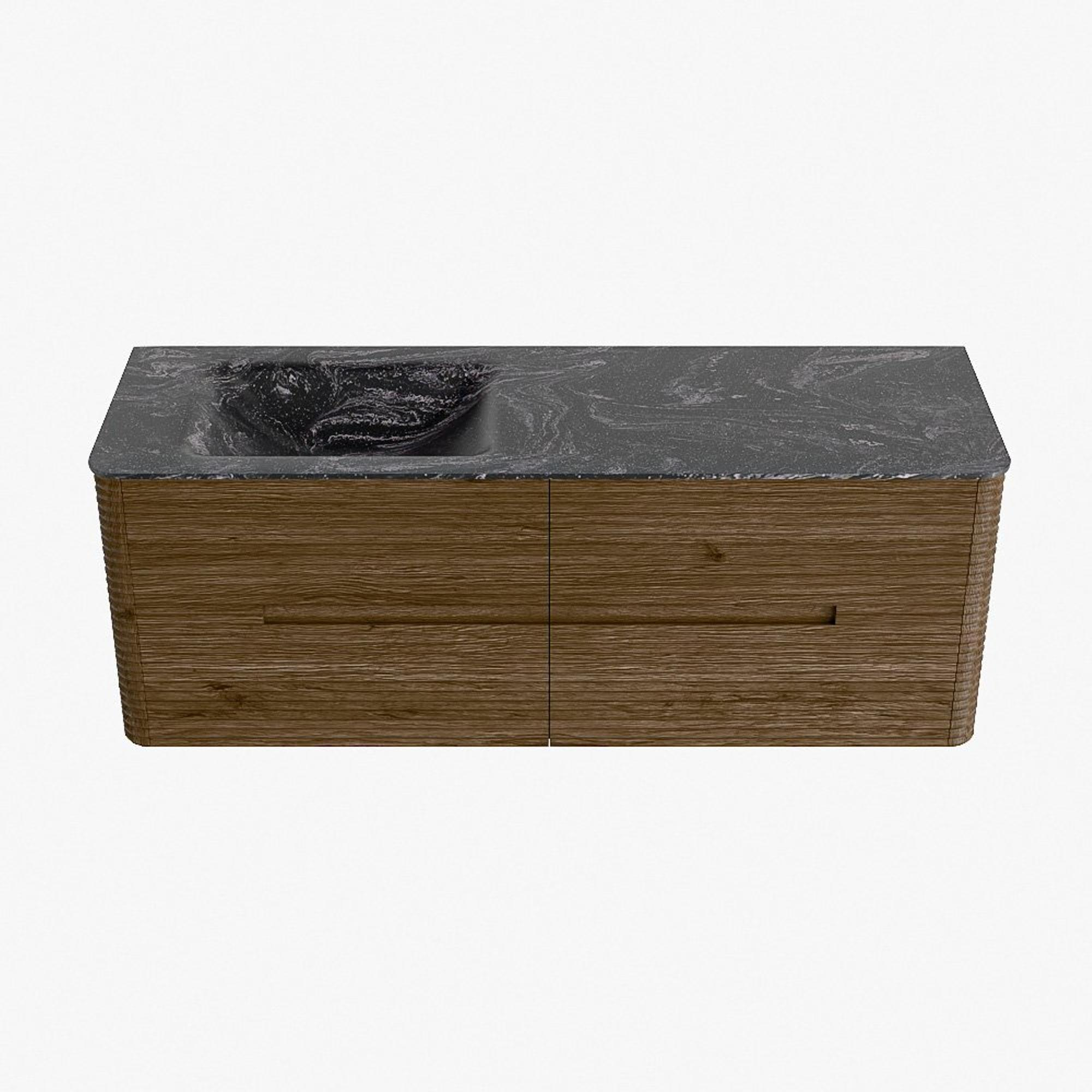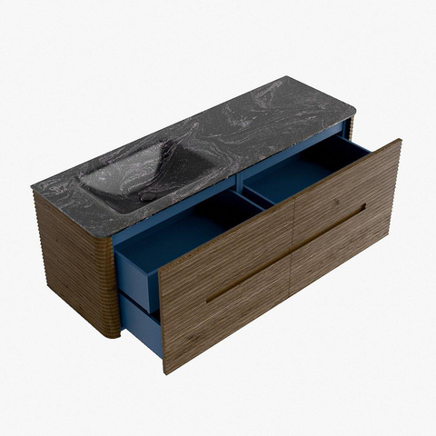 Mondiaz CIRO-DLUX Badkamermeubelset - 140x45x50cm - Solid surface wastafel Lava - 1 wasbak Links - zonder kraangaten - 4 lades - Dusk