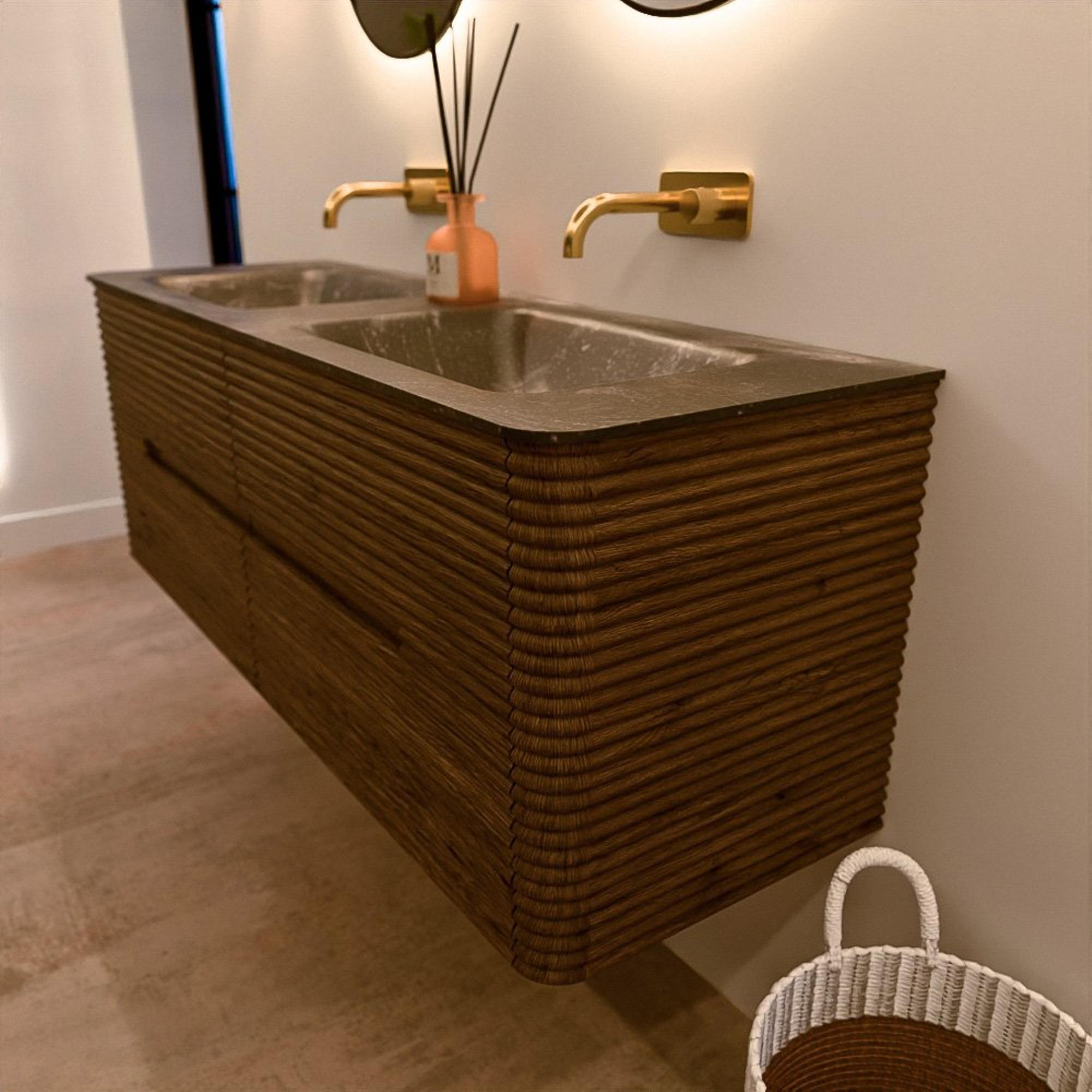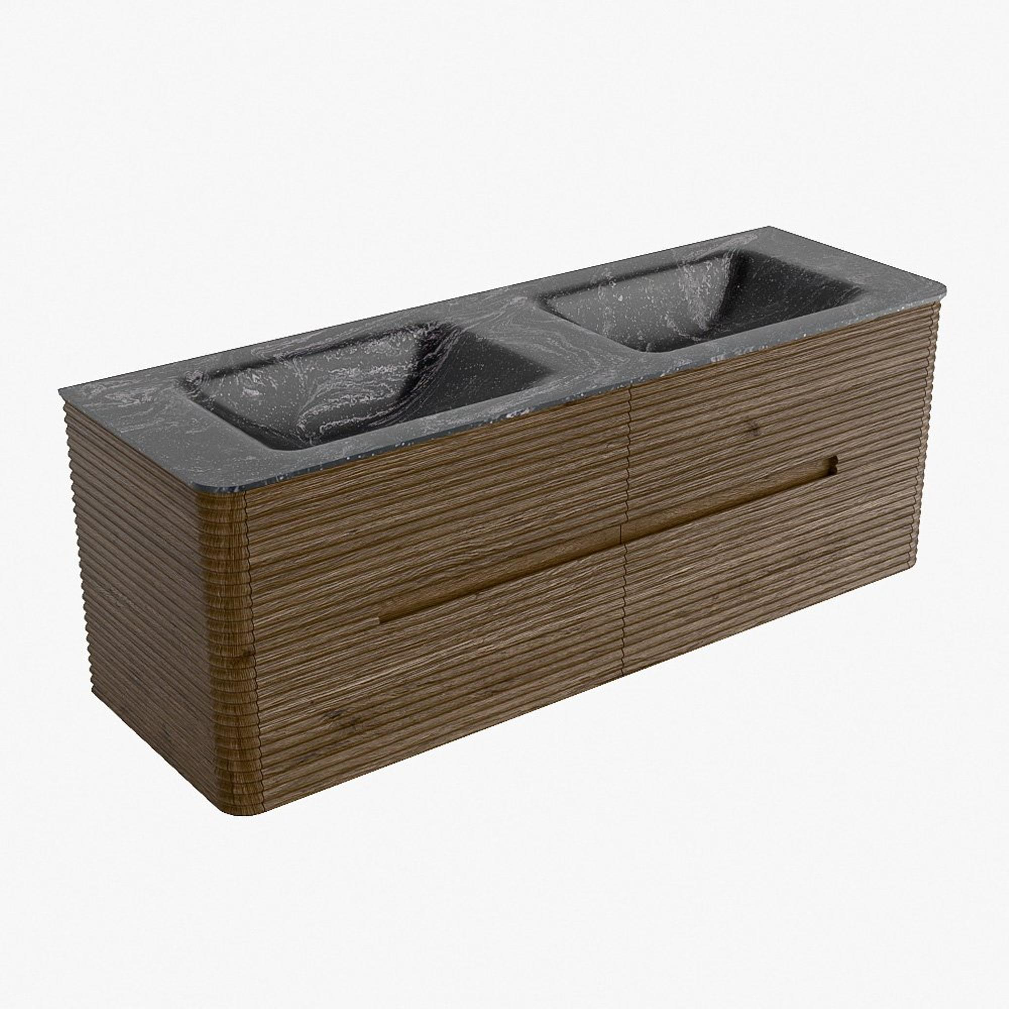 Mondiaz CIRO-DLUX Badkamermeubelset - 140x45x50cm - Solid surface wastafel Lava - 2 wasbak Dubbel - zonder kraangaten - 4 lades - Dusk