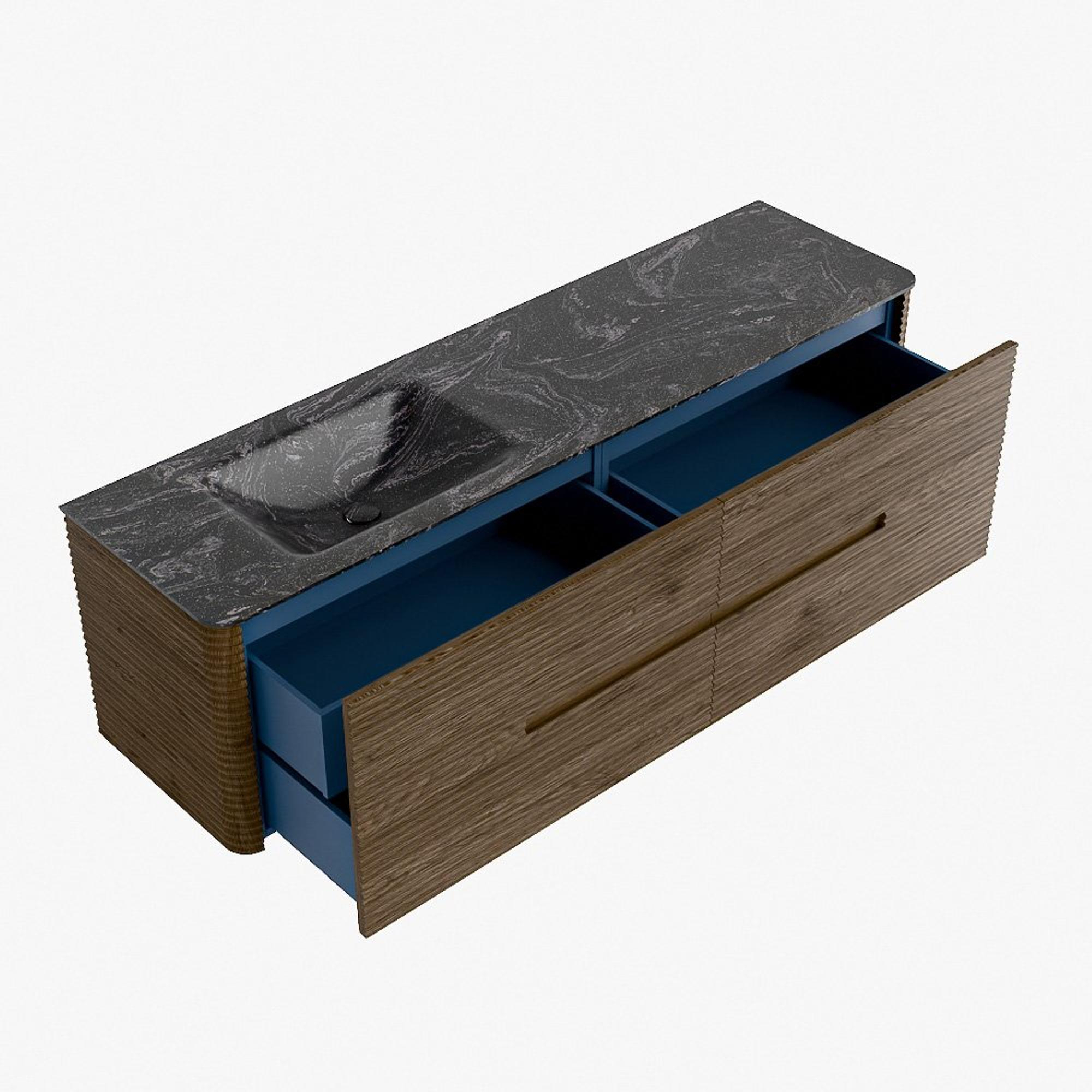 Mondiaz CIRO-DLUX Badkamermeubelset - 170x45x50cm - Solid surface wastafel Lava - 1 wasbak Links - 1 kraangat - 4 lades - Dusk