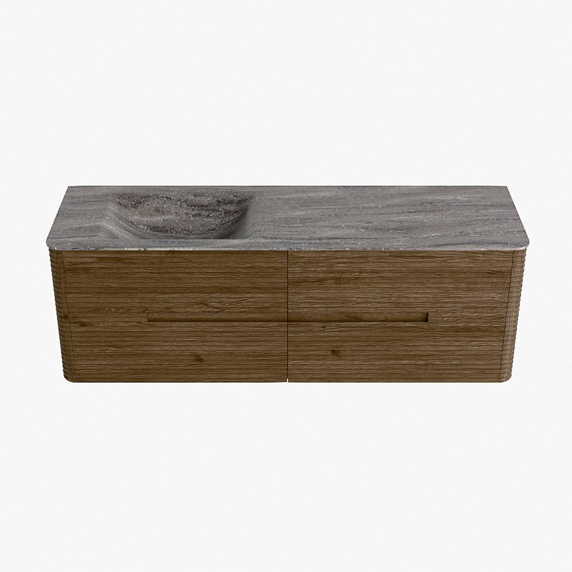 Mondiaz CIRO-DLUX Badkamermeubelset - 150x45x50cm - Solid surface wastafel Oza - 1 wasbak Links - 1 kraangat - 4 lades - Dusk