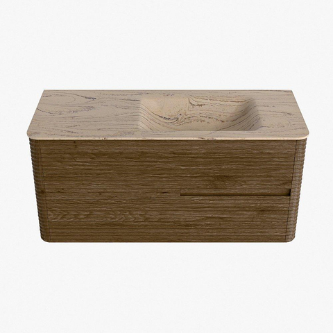 Mondiaz CIRO-DLUX Badkamermeubelset - 110x45x50cm - Solid surface wastafel Arena - 1 wasbak Rechts - zonder kraangaten - 2 lades - Dusk