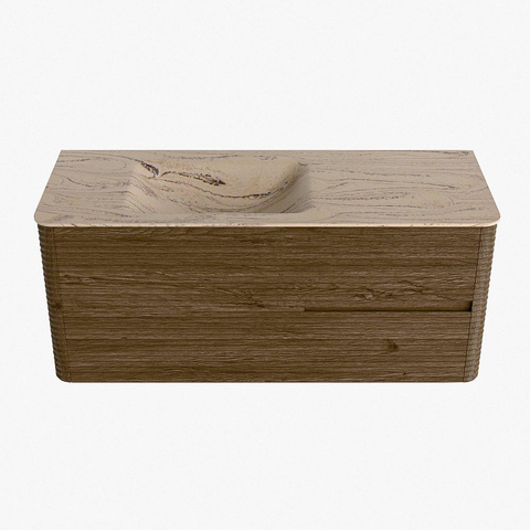 Mondiaz CIRO-DLUX Badkamermeubelset - 120x45x50cm - Solid surface wastafel Arena - 1 wasbak Links - zonder kraangaten - 2 lades - Dusk
