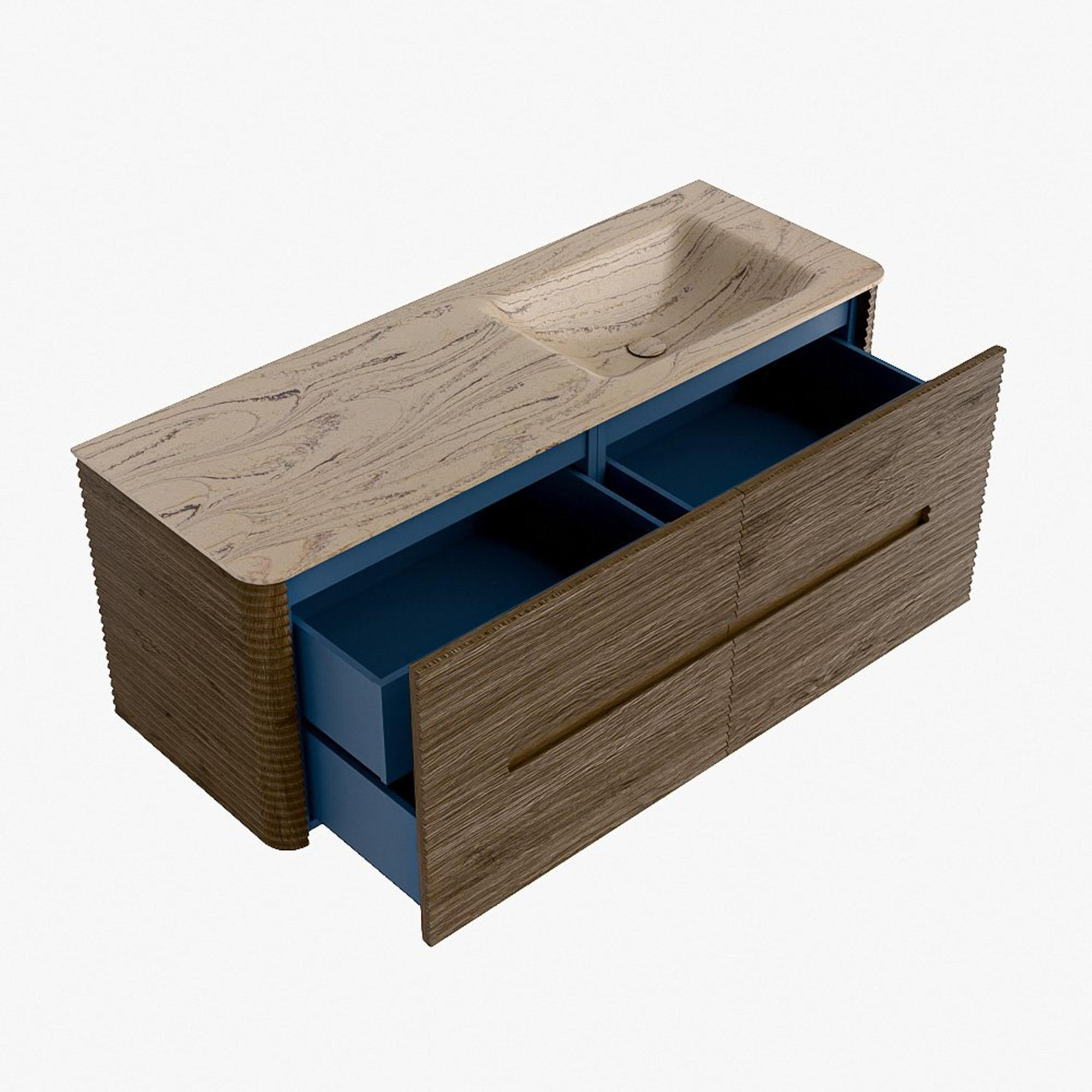 Mondiaz CIRO-DLUX Badkamermeubelset - 130x45x50cm - Solid surface wastafel Arena - 1 wasbak Rechts - 1 kraangat - 4 lades - Dusk