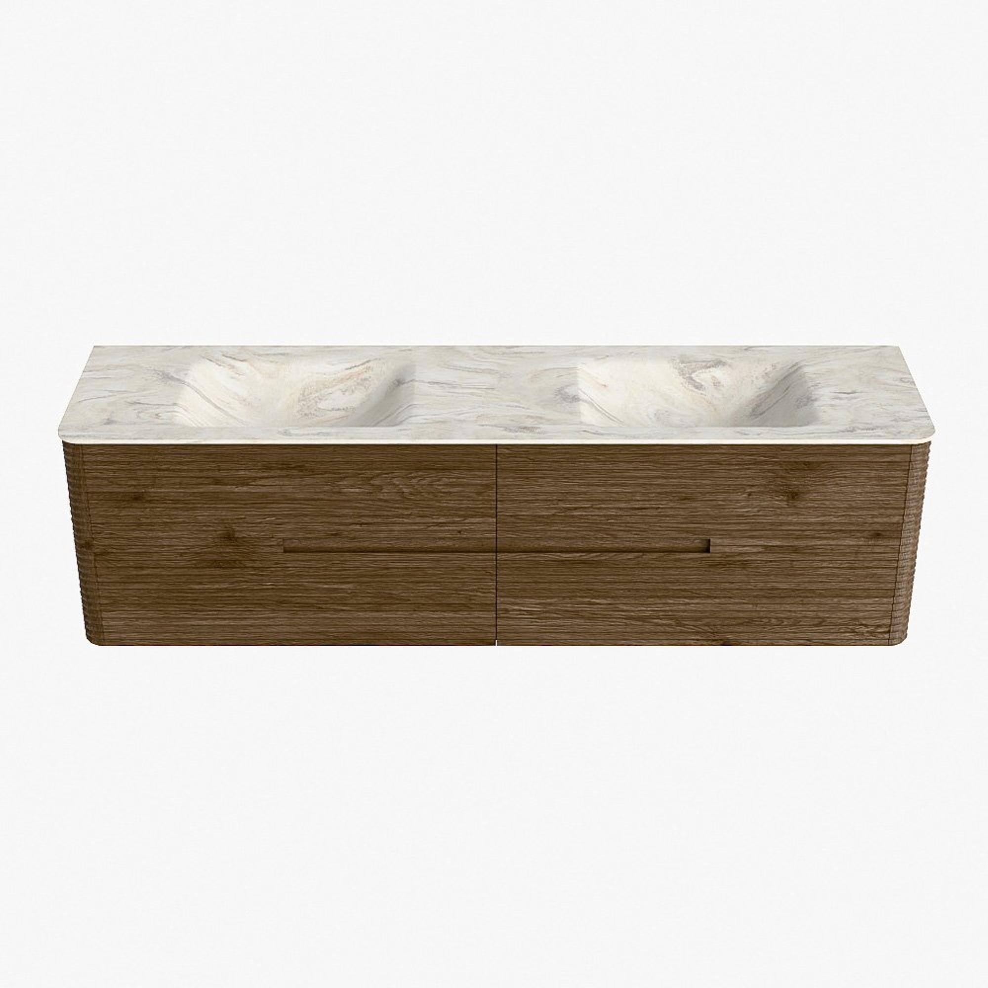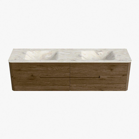 Mondiaz CIRO-DLUX Badkamermeubelset - 180x45x50cm - Solid surface wastafel Ostra - 2 wasbak Dubbel - 2 kraangaten - 4 lades - Dusk