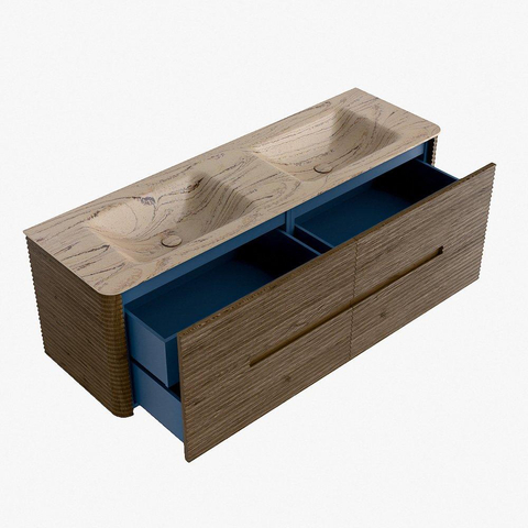 Mondiaz CIRO-DLUX Badkamermeubelset - 150x45x50cm - Solid surface wastafel Arena - 2 wasbak Dubbel - 2 kraangaten - 4 lades - Dusk