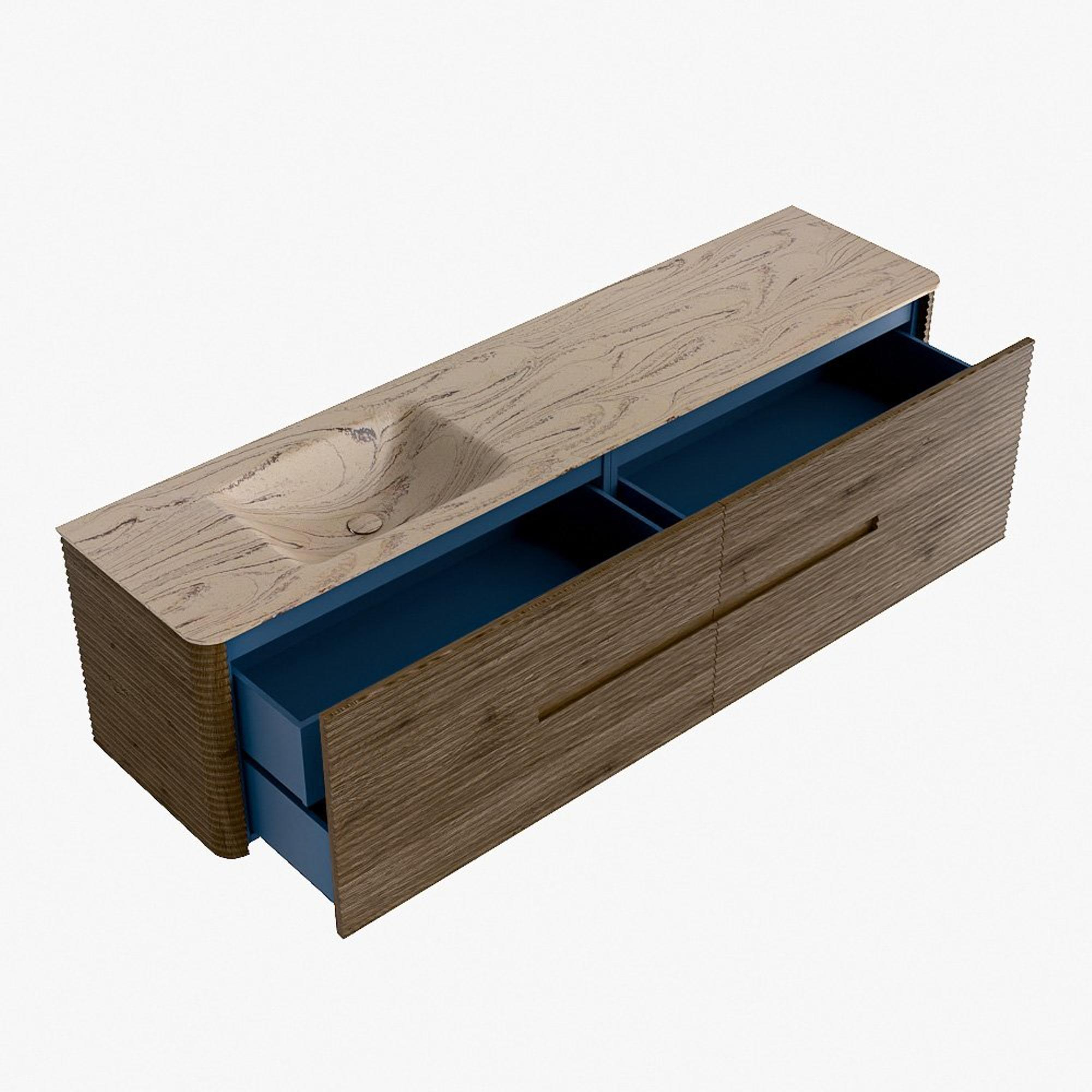 Functioneel gemak is een essentieel onderdeel van de CIRO-serie. Het meubel beschikt over een royale lade met extra binnen lade, ideaal voor het overzichtelijk opbergen van alle dagelijkse badkamerartikelen. Dankzij de geïntegreerde greep en het soft close-mechanisme blijft het front rustig, strak en elegant.
