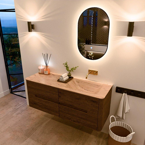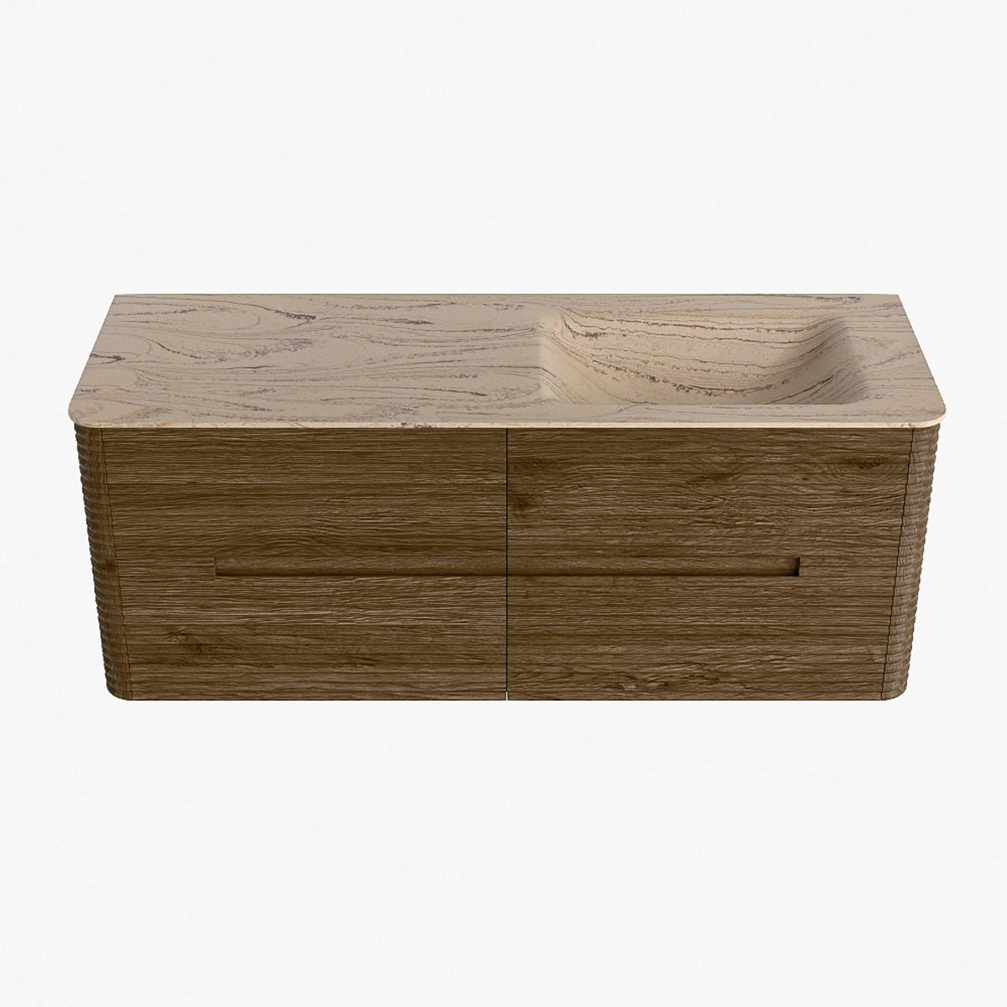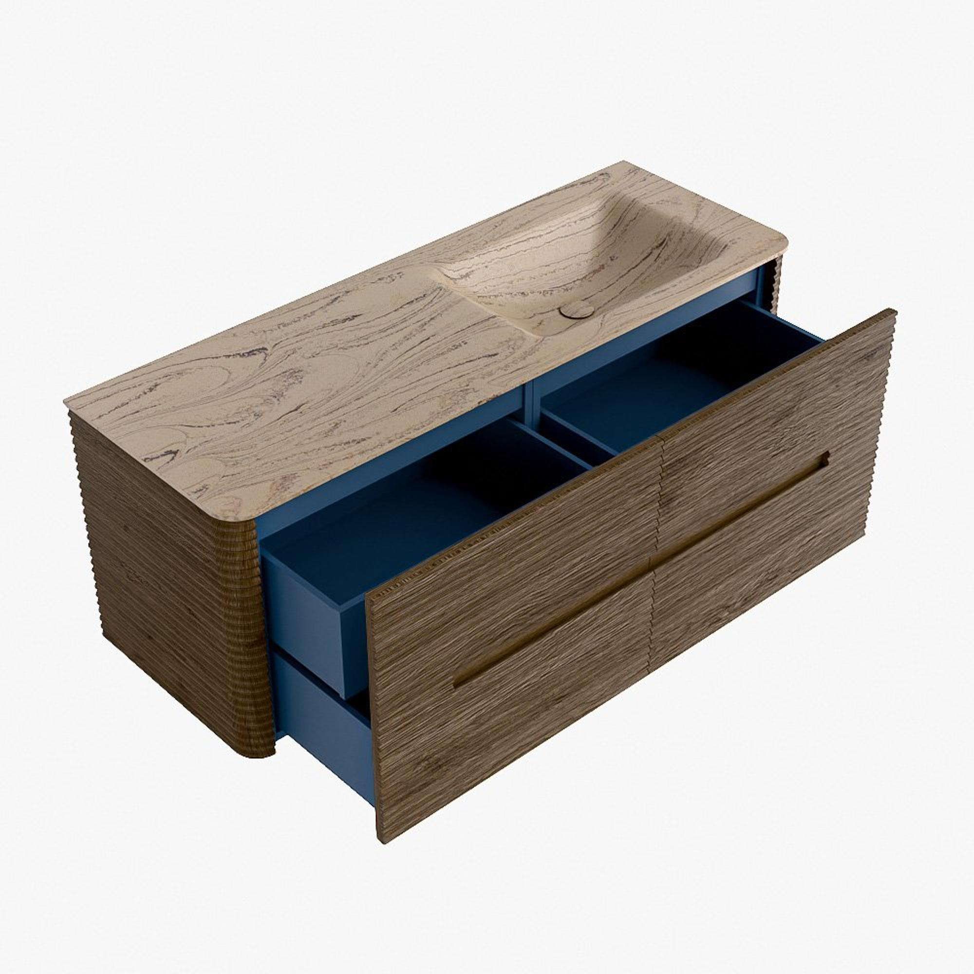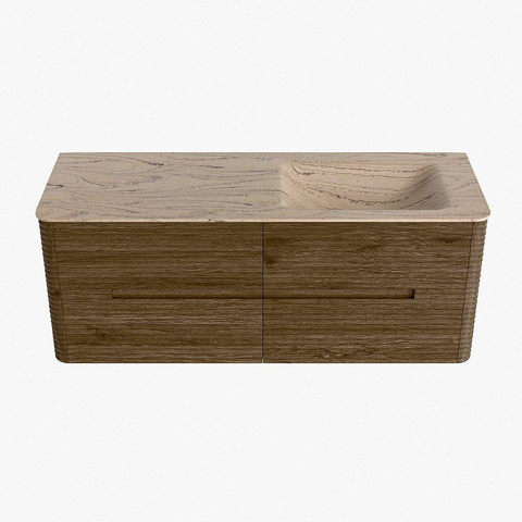 Mondiaz CIRO-DLUX Badkamermeubelset - 130x45x50cm - Solid surface wastafel Arena - 1 wasbak Rechts - zonder kraangaten - 4 lades - Dusk