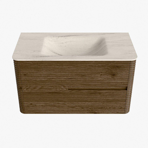 Mondiaz CIRO-DLUX Badkamermeubelset - 90x45x50cm - Solid surface wastafel Meli - 1 wasbak Midden - zonder kraangaten - 2 lades - Dusk
