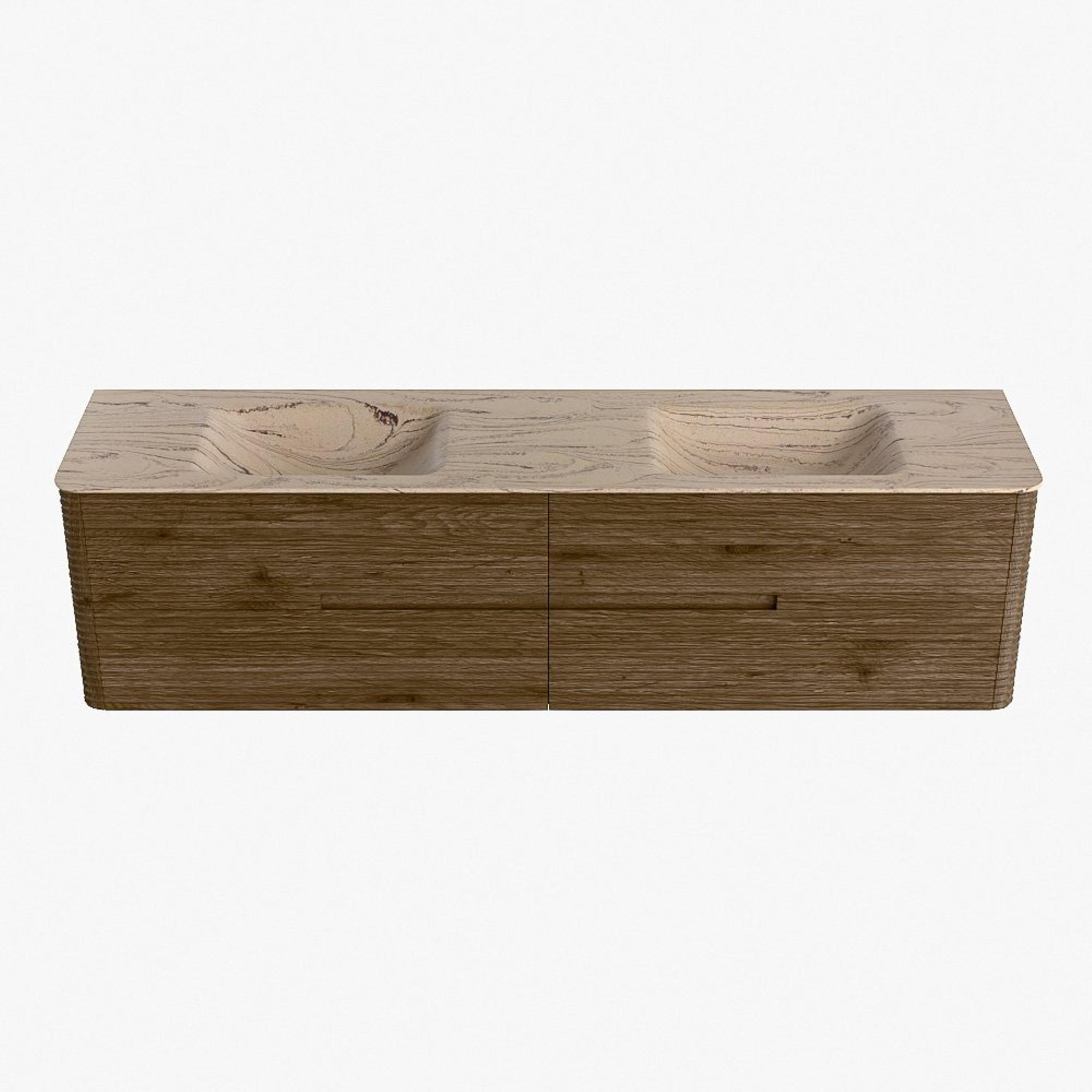 Mondiaz CIRO-DLUX Badkamermeubelset - 190x45x50cm - Solid surface wastafel Arena - 2 wasbak Dubbel - zonder kraangaten - 4 lades - Dusk