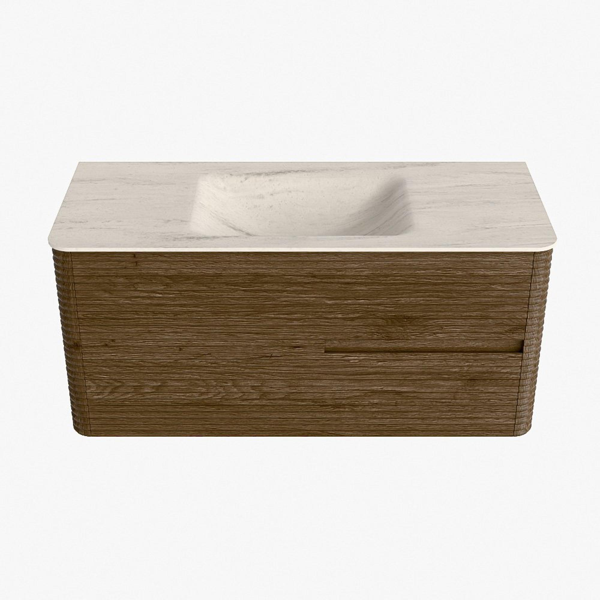 Mondiaz CIRO-DLUX Badkamermeubelset - 110x45x50cm - Solid surface wastafel Meli - 1 wasbak Midden - 1 kraangat - 2 lades - Dusk