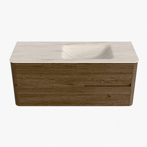 Mondiaz CIRO-DLUX Badkamermeubelset - 120x45x50cm - Solid surface wastafel Meli - 1 wasbak Rechts - zonder kraangaten - 2 lades - Dusk