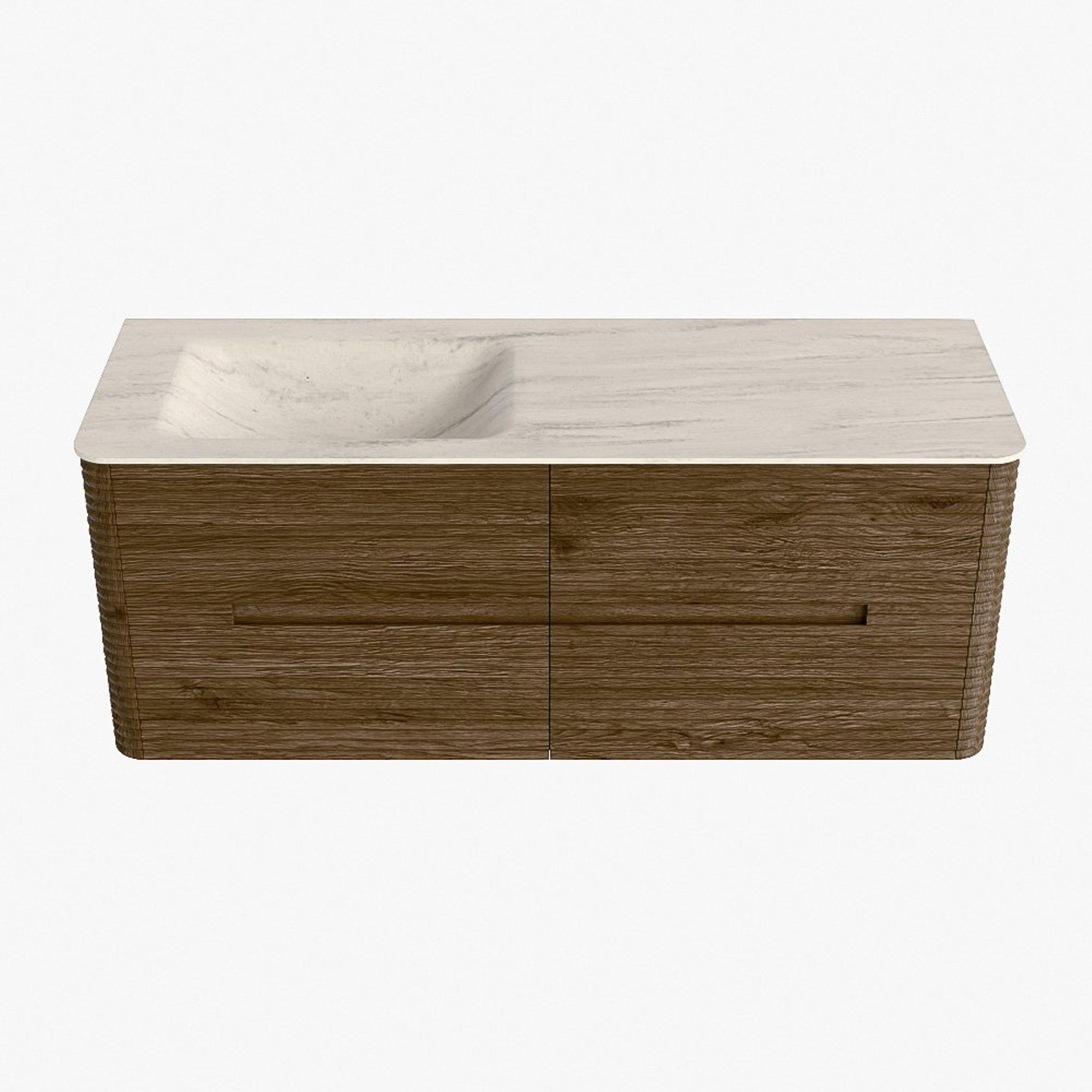 Mondiaz CIRO-DLUX Badkamermeubelset - 130x45x50cm - Solid surface wastafel Meli - 1 wasbak Links - zonder kraangaten - 4 lades - Dusk