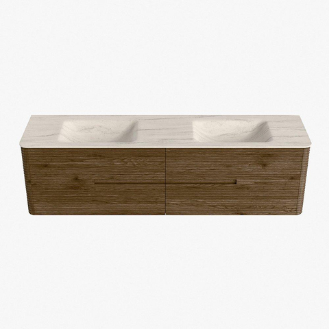 Mondiaz CIRO-DLUX Badkamermeubelset - 180x45x50cm - Solid surface wastafel Meli - 2 wasbak Dubbel - 2 kraangaten - 4 lades - Dusk