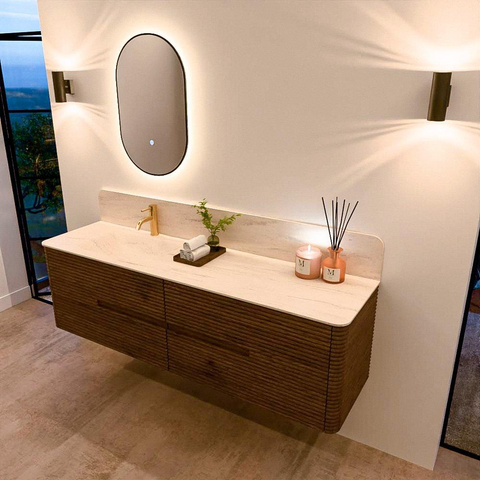 De wastafels van de CIRO-lijn worden vervaardigd uit hoogwaardig Solid Surface, een materiaal dat bekendstaat om zijn strakke uitstraling, hygiënische eigenschappen en uitstekende duurzaamheid. De wastafels zijn beschikbaar in 11 marmer- en travertin tinten, waarmee je het luxueuze karakter van natuursteen combineert met de voordelen van Solid Surface. De organische vorm van de kom versterkt het serene, sculpturale karakter van het ontwerp.