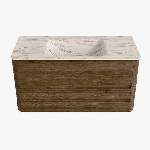 Mondiaz CIRO-DLUX Badkamermeubelset - 100x45x50cm - Solid surface wastafel Nata - 1 wasbak Midden - zonder kraangaten - 2 lades - Dusk