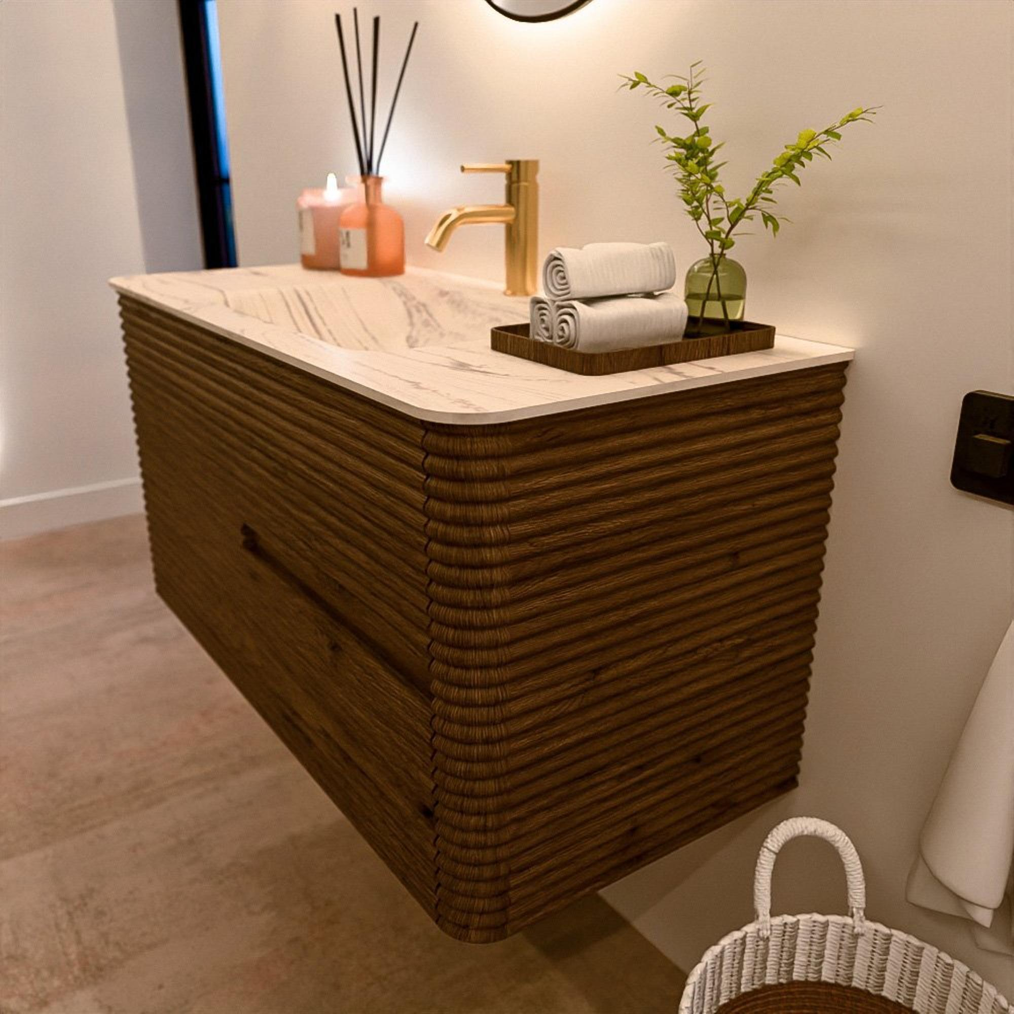 Het CIRO-DLUX badkamermeubel is ontwikkeld voor wie kiest voor modern design, natuurlijke materialen en hoogwaardige functionaliteit. Met maatvoeringen van 70 cm tot 190 cm past de CIRO-serie moeiteloos in zowel compacte badkamers als royale designruimtes. Elk meubel is een uitgebalanceerde combinatie van esthetiek, ambacht en duurzame kwaliteit.