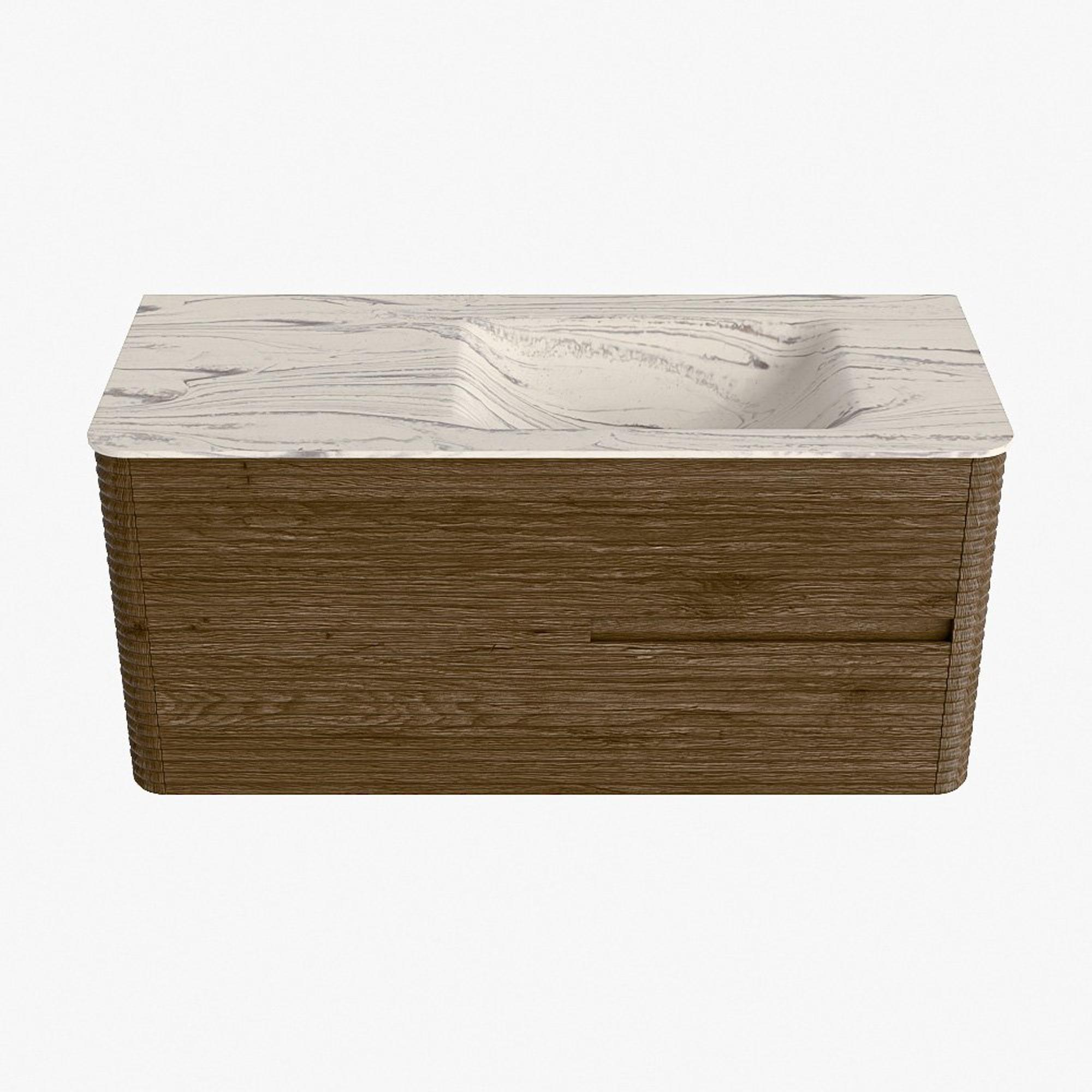 Mondiaz CIRO-DLUX Badkamermeubelset - 110x45x50cm - Solid surface wastafel Nata - 1 wasbak Rechts - 1 kraangat - 2 lades - Dusk