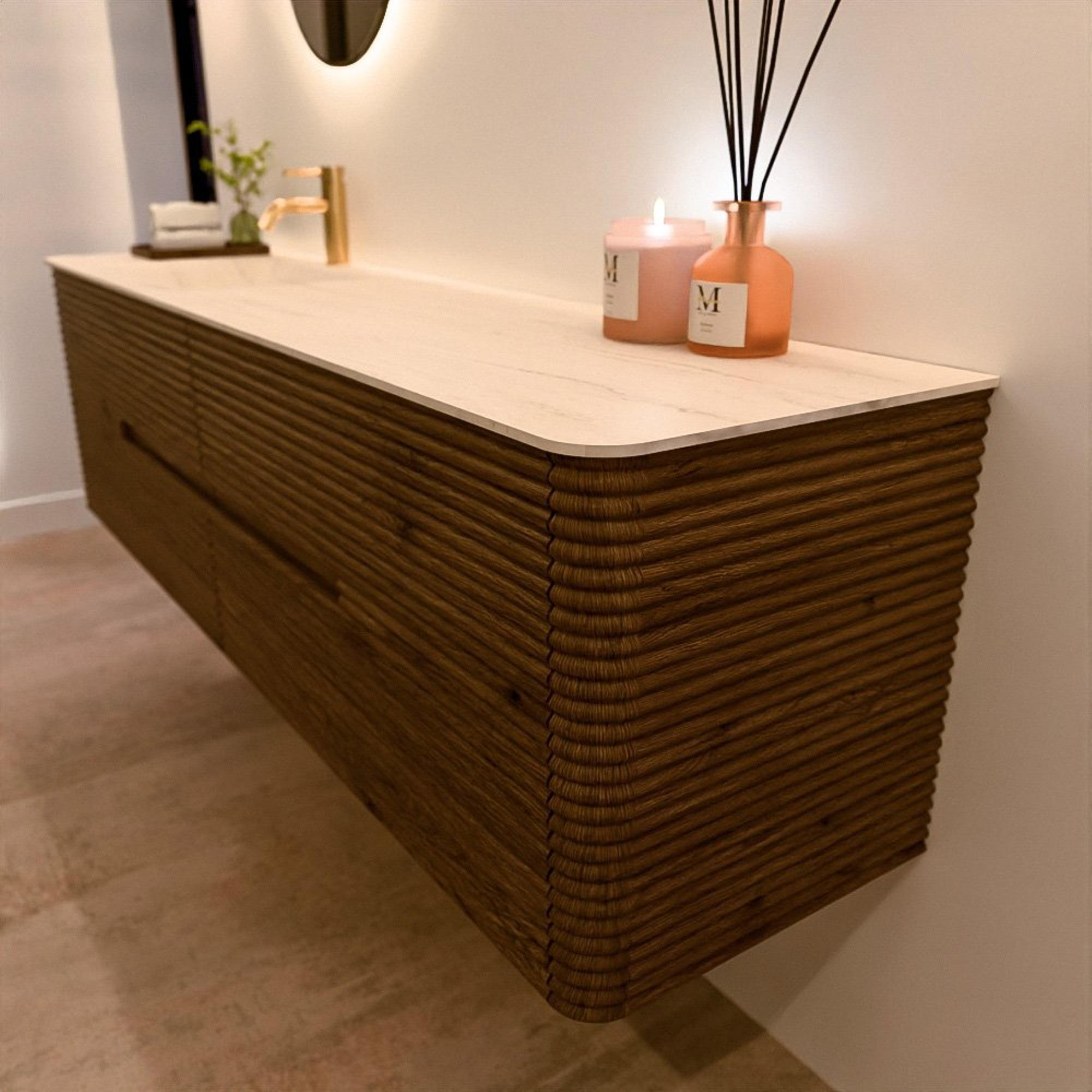 Het CIRO-DLUX badkamermeubel is ontwikkeld voor wie kiest voor modern design, natuurlijke materialen en hoogwaardige functionaliteit. Met maatvoeringen van 70 cm tot 190 cm past de CIRO-serie moeiteloos in zowel compacte badkamers als royale designruimtes. Elk meubel is een uitgebalanceerde combinatie van esthetiek, ambacht en duurzame kwaliteit.