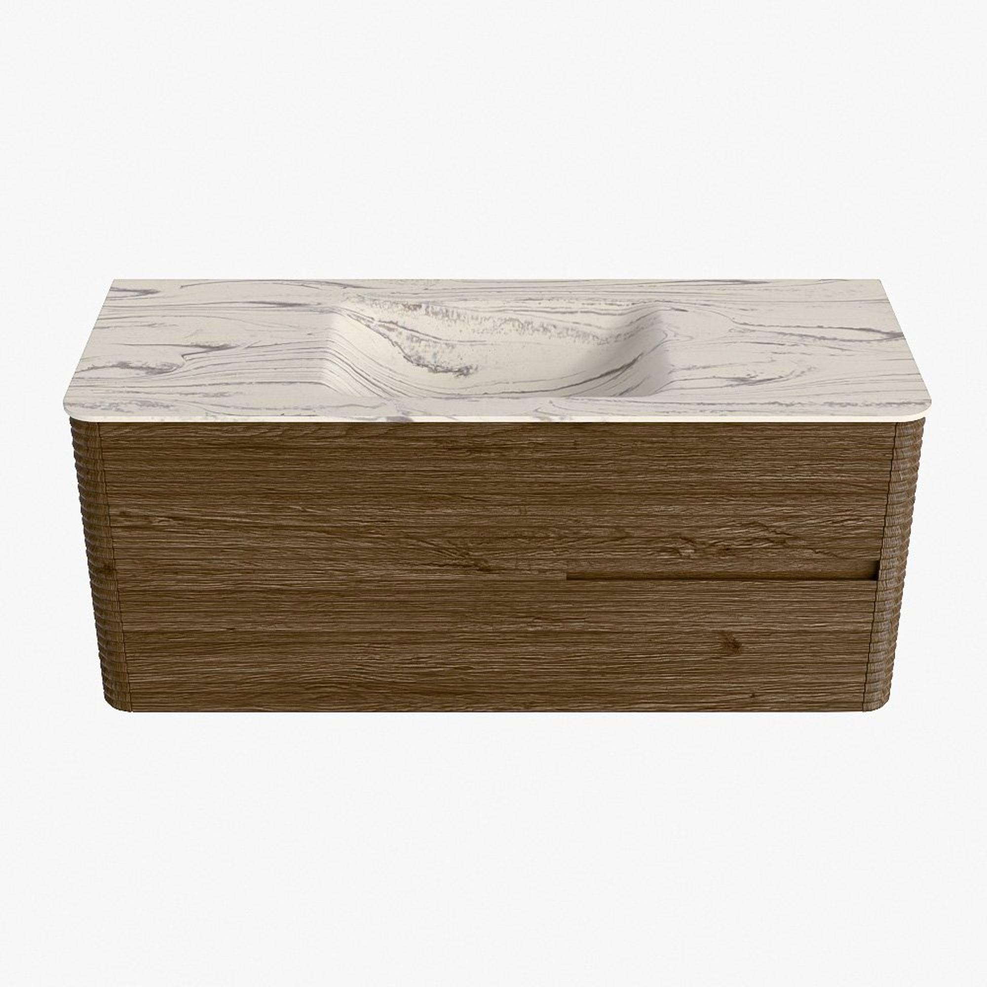 Mondiaz CIRO-DLUX Badkamermeubelset - 120x45x50cm - Solid surface wastafel Nata - 1 wasbak Midden - zonder kraangaten - 2 lades - Dusk