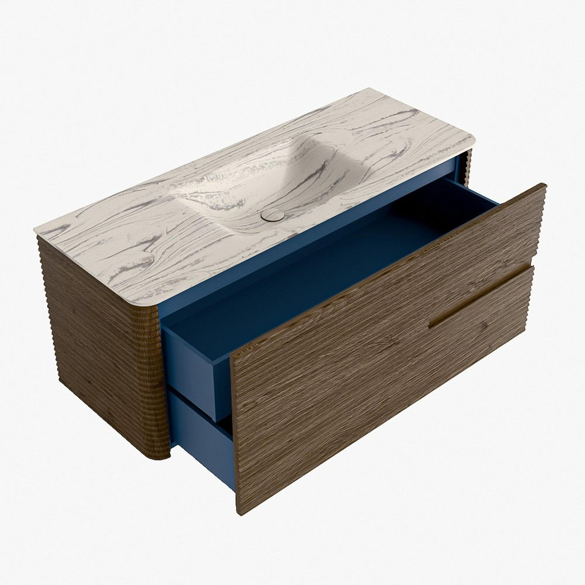 Mondiaz CIRO-DLUX Badkamermeubelset - 120x45x50cm - Solid surface wastafel Nata - 1 wasbak Midden - 1 kraangat - 2 lades - Dusk